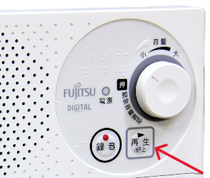 受信機本体の「再生ボタン」を押すだけで、直近の放送内容を聞くことができます。