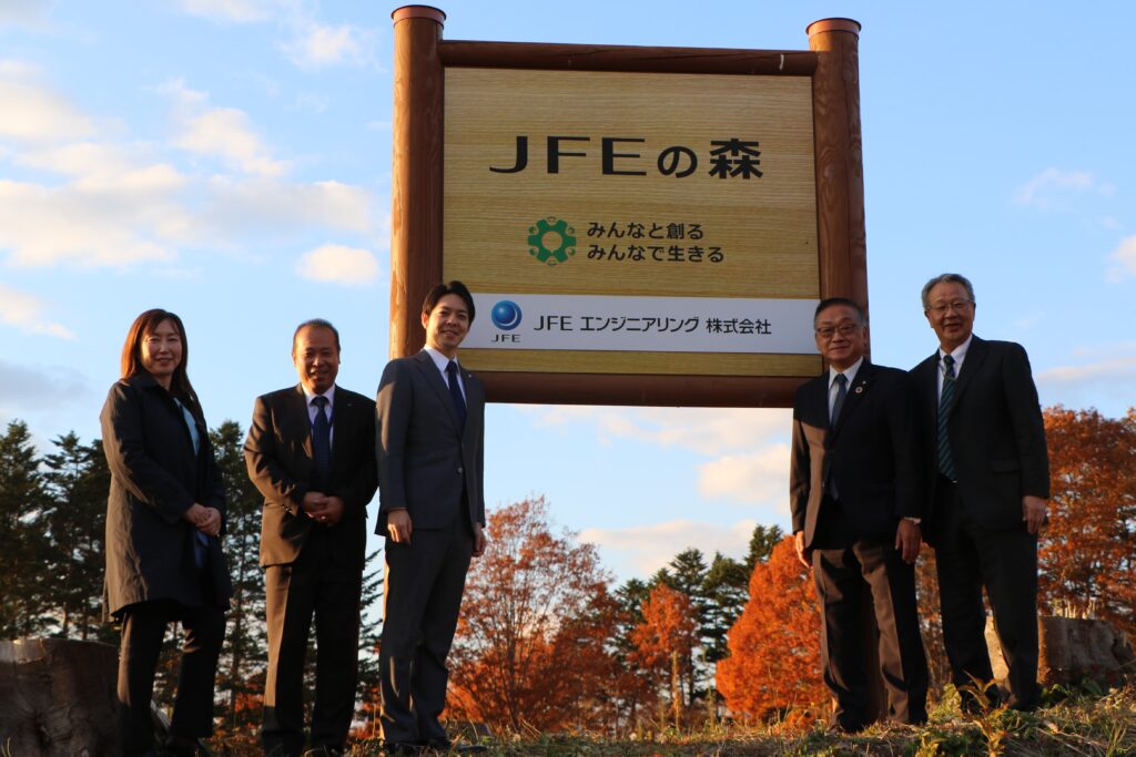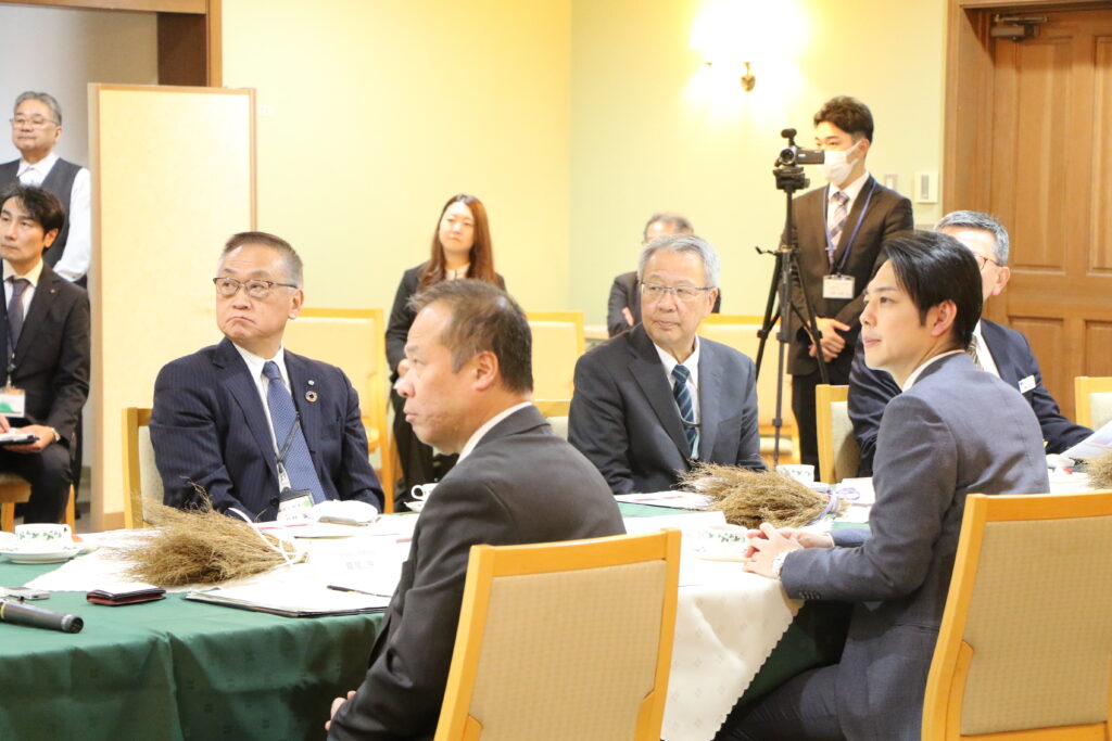 懇談では、町と「エネルギーの森」実証事業に関する協定を結ぶJFEエンジニアリング株式会社(代表取締役社長 福田一美(ふくだかずよし)、東京都)から、木質バイオマス燃料の安定的・効率的な供給システム構築に向けた取組についての説明を受け、「道としても、皆さんと連携しながら、地域の魅力発信や再生可能エネルギーの導入支援などに取り組んでいきます」と話しました。