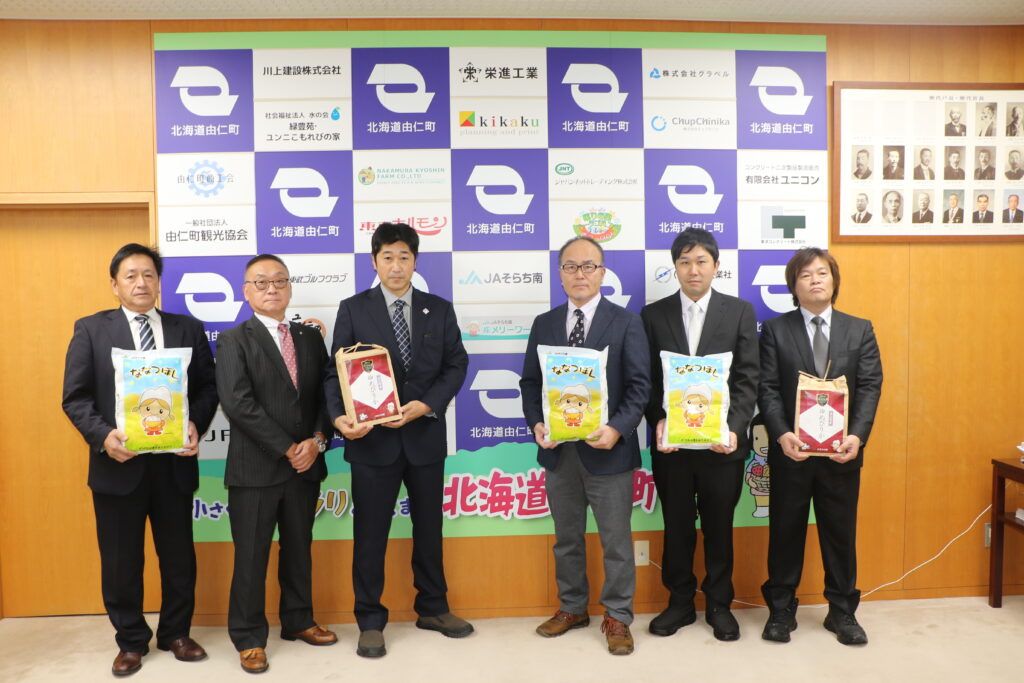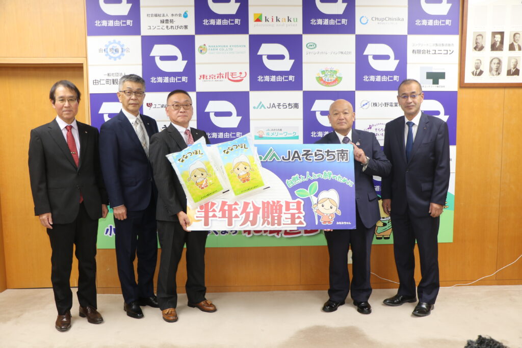 さらに、JAそらち南「ゆめぴりか」生産組合(組合長 賀集謙一(かしゅうけんいち))から「ゆめぴりか」300㎏、そらち南減農薬米生産組合(組合長 塚本政紀(つかもとまさのり))から「ななつぼし」200㎏を寄贈していただきました。