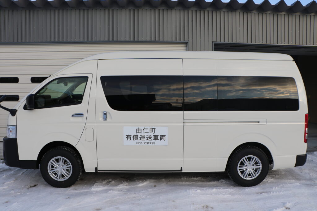 由仁と北広島をつなぐデマンドバスが1月4日から新しくなり、無地の白い車両になりますので、お間違えのないよう確認ください。
